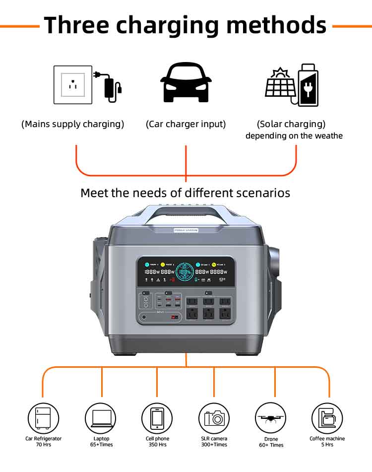 Excel-Value wird weiterhin Produkte liefern, die Ihren wachsenden Strombedarf im Freien decken und ein leistungsstarkes Notstromsystem für Sie aufbauen. Wir können tragbare Kraftwerke von 300 W bis 3000 W anbieten.